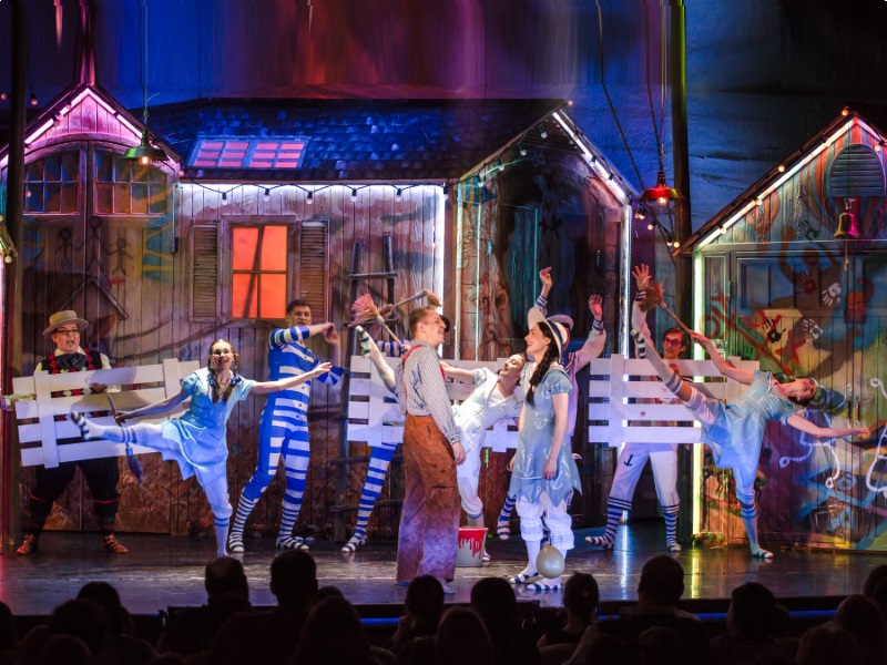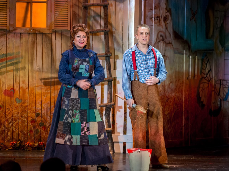 Режиссер Анна Осипенко обращается не только к детям, но и к родителям и насыщает спектакль философскими подтекстами, несколько размывая адресную аудиторию. Начавшееся было действо прерывает – в буквальном смысле – актер, вступающий с залом в диалог и предлагающий собравшимся вспомнить детство, когда вновь зазвучит музыка и распахнется занавес, именно он появится в образе Тома, открыв условную дверь в собственное прошлое.